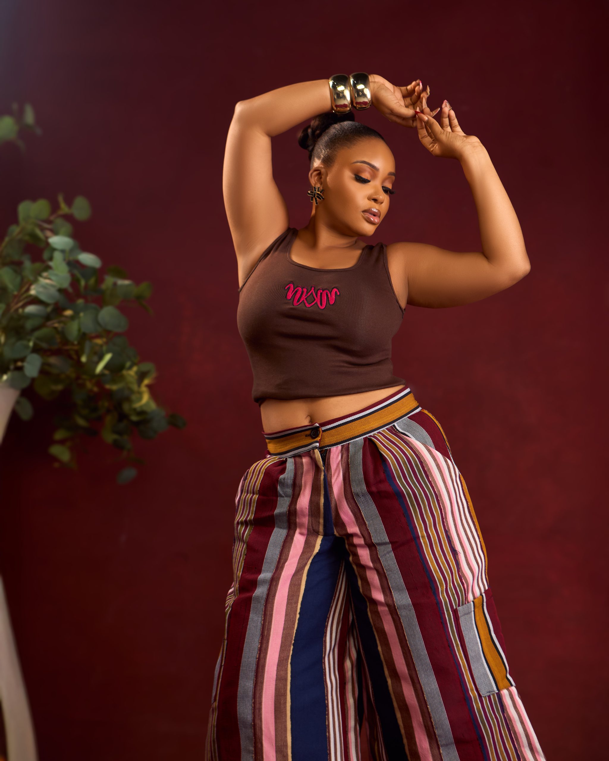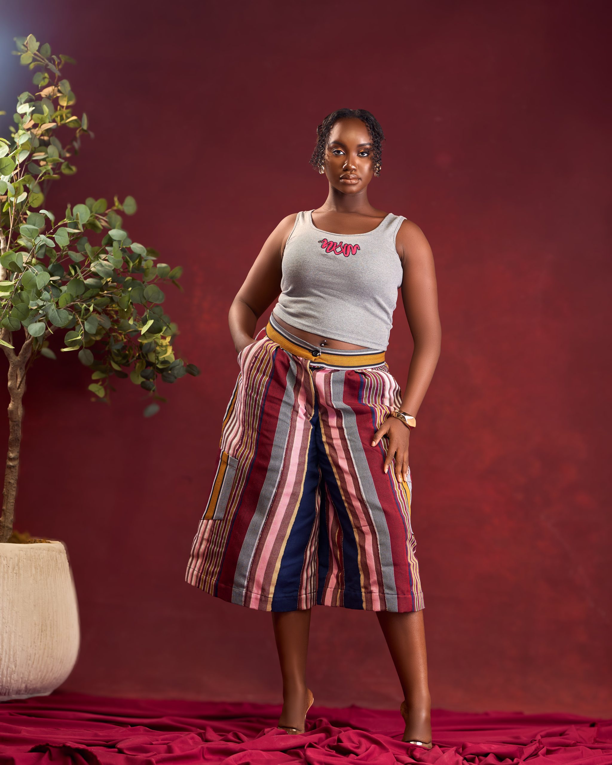 These AfribyNN striped pants are crafted from rich, heritage inspired fabrics, cut in a relaxed yet flattering silhouette that moves effortlessly with you. Perfect for everyday elegance with a touch of tradition.