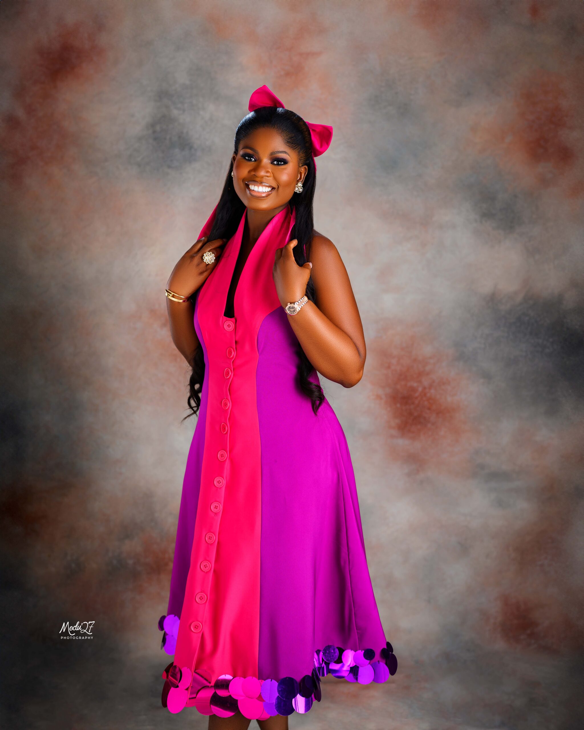 A perfect blend of fun, elegance, and coordinated charm, this vibrant dress celebrates colour and creativity. Designed with a flattering A-line silhouette, it features bold contrasting panels that make the look effortlessly eye-catching. The highlight of the design lies in the sequin embellishments at the hem, adding a playful shimmer and refined sparkle to every movement.