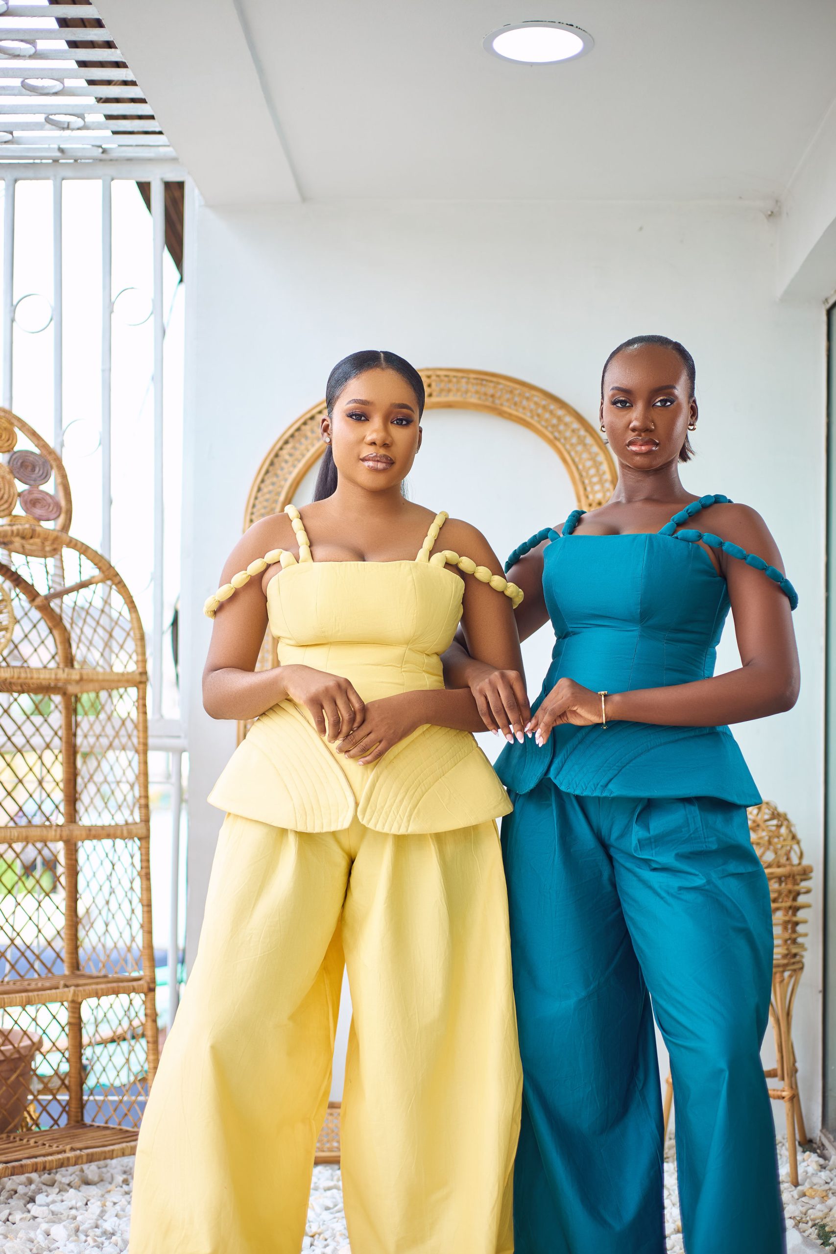 A bold expression of refined femininity in Penelope Set this two-piece set commands attention with its sculpted neckline and intricate shoulder detailing featuring softly padded straps that drape gracefully across the arms. The blouse is accentuated with side panel detailing and a curved peplum finish, creating a structured yet flattering silhouette that defines the waist beautifully.