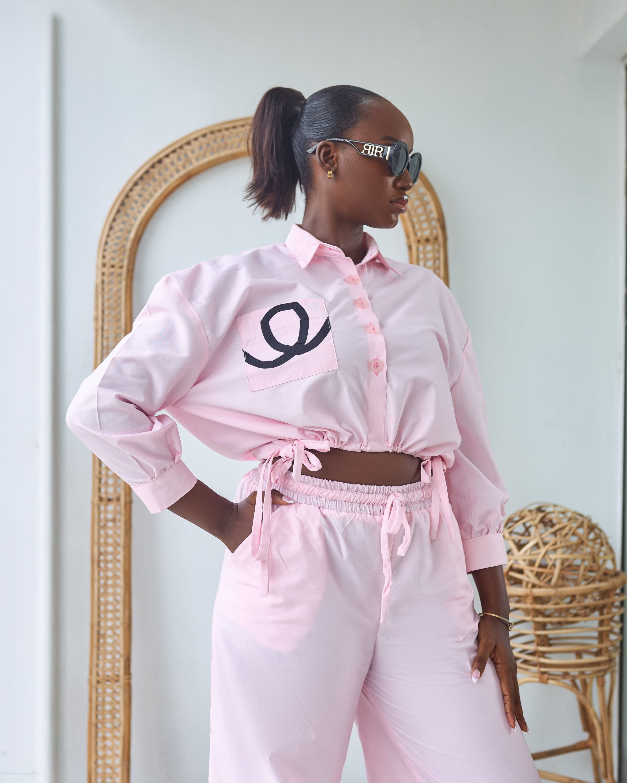 Effortlessly cool and contemporary, Lana set features a cropped ruched shirt that combines relaxed tailoring with a flattering, cinched fit. The shirt’s modern silhouette is complemented by our signature design detail on the pocket, adding a touch of brand identity and understated edge.
